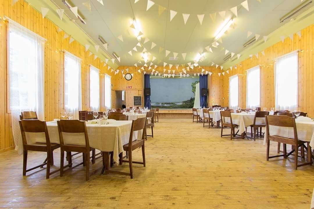 Tilat käytettävissä kaksi vuorokautta (mukaan lukien valmistelu ja siivous). Sisältää pöydät, pöytäliinat, astiaston ja varusteiden käytön. Vuokraaja huolehtii siivouksesta, tiskauksesta ja pöytäliinojen pesusta. Vaihtoehtoisesti siivousmaksu 90 €. Sali talvikaudella 1.9.-30.4. vain sopimuksen mukaan (tarvittaessa lämmityskulut lisätään vuokrahintaan).